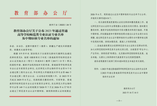 近日,教育部办公厅公布了2023年通过普通高等学校师范类专业认证专业名单,英国365集团公司历史学专业顺利通过师范类专业中学教育第二级认证。