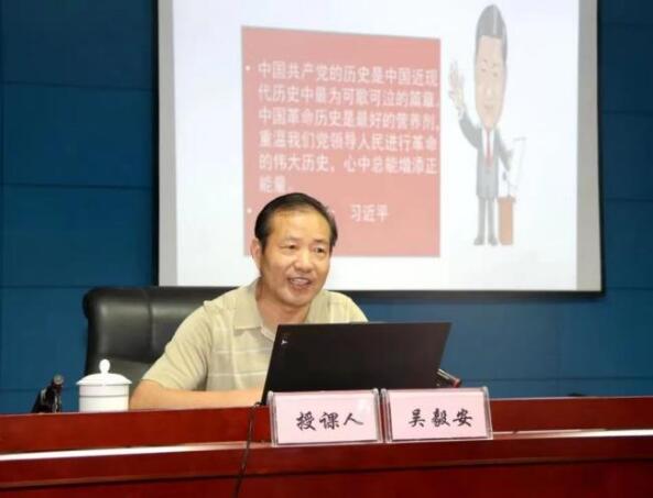 吴毅安教授从回顾中国新民主主义革命发展史入题,紧扣“中国共产党的安庆抗战历程”这一主题,围绕“岳西谈判开创停战合作抗敌新局面”“党的各级组织恢复与重建”“建立地方抗日武装”等八个方面,解读了中国共产党的安庆抗战历程,以及安庆人民在党的坚强领导下为全国抗战胜利所做出的不懈努力和杰出贡献。