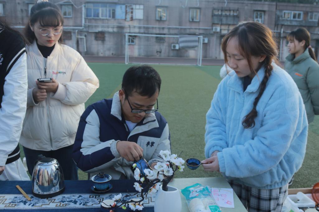 望江挑花和刺绣体验区的周围参与者围了一圈又一圈,学生们凝神专注于手中的针线,在汉语国际教育专业学生的指导下绣出了一个个美丽的图案。“第一次接触刺绣很新奇,以前只看过奶奶绣过这种东西。”中国语言文学类专业2021(5)班的鲁子枫说,“除了亲身体验刺绣,还学到了很多关于挑花的小知识,比如中国的四大名绣等”。