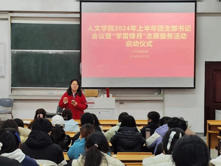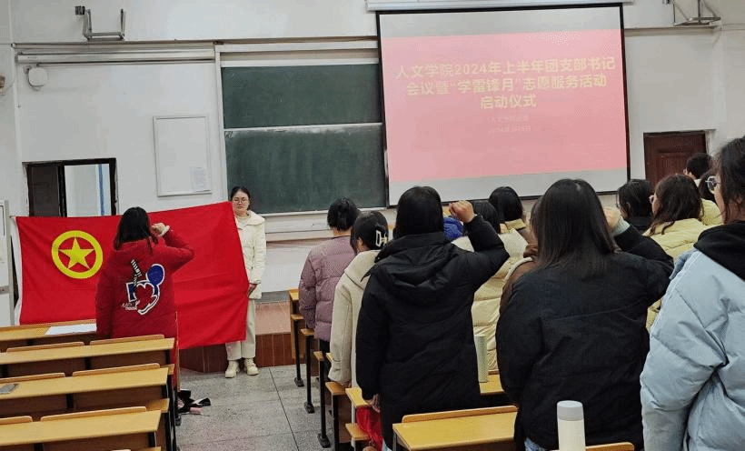 会议伊始,全体团干部面向团旗,重温入团誓词,回顾共青团员初心及使命。会议第二部分,全体团干部共同学习了习近平总书记有关弘扬雷锋精神的重要论述及阿东、赵世堂同志在第七届中国青年志愿服务项目大赛暨志愿服务交流会上的讲话,洪星星向全体团干部传达“学雷锋月”志愿服务活动的相关要求,鼓励各团干部动员班级成员以实际行动投身于青年志愿服务活动,深刻把握雷锋精神的时代内涵和实践要求,弘扬“奉献、友爱、互助、进步”的志愿服务精神。