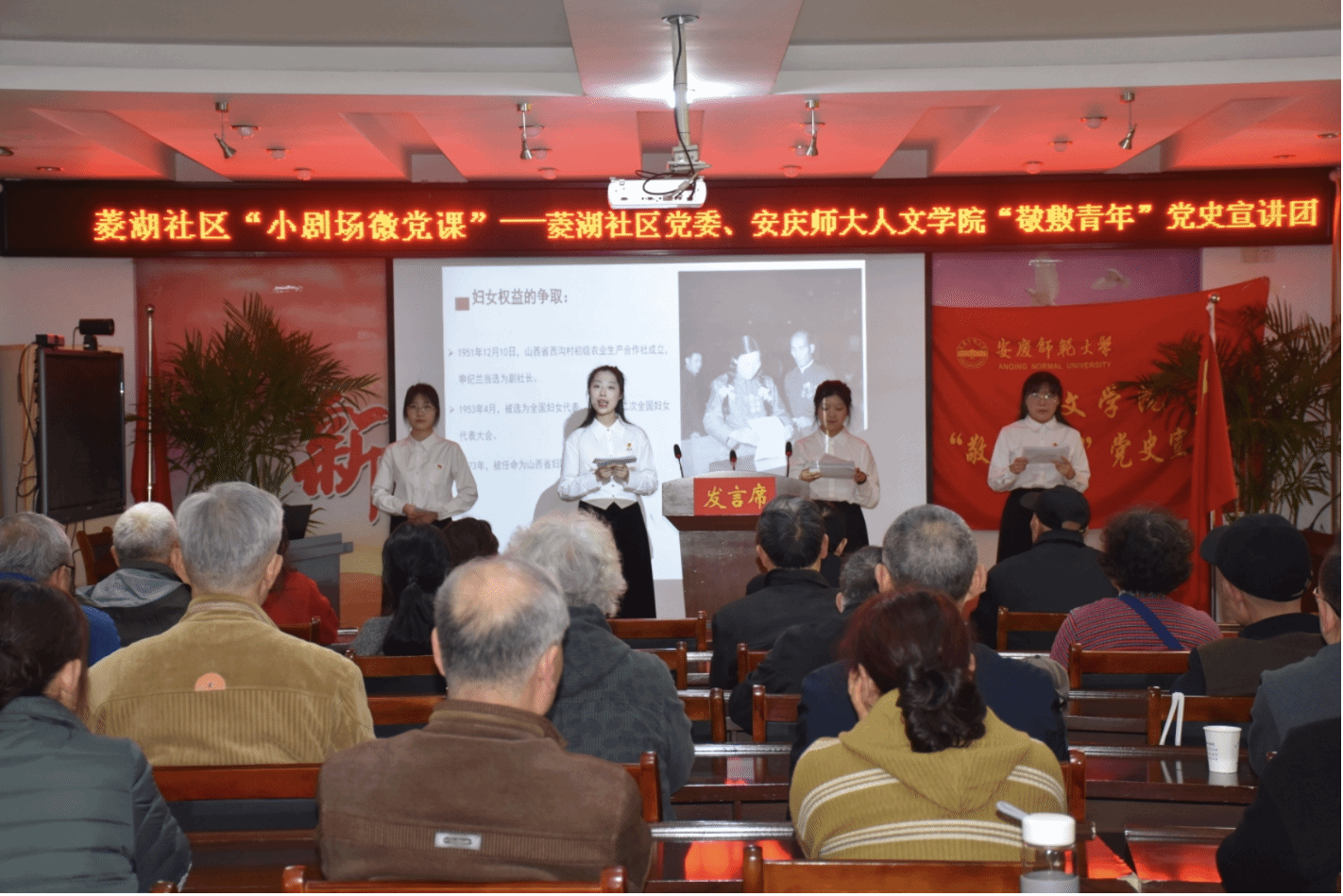 首先,英国365集团公司“敬敷青年”党史宣讲团的成员们向菱湖社区的老党员、退伍军人以及工作人员讲述了缪伯英、申纪兰两位女英雄的故事。宣讲团的成员们以满腔的热血生动形象地讲述了“宣传赤化的红党”缪伯英与“共和国勋章获得者”申纪兰两位杰出女性,凭借坚定的信仰与无私的奉献,书写她们辉煌的篇章。缪伯英与申纪兰,尽管生于不同岁月,却共同怀有那份不渝的初心与崇高使命。她们为了民族的兴衰存亡和人民的福祉,毅然踏上了奋斗拼搏的征程,努力为女性争取平等的权益。她们身上闪耀着的,是共产党员的坚定信念和崇高精神,是对国家和人民深厚情感的体现。