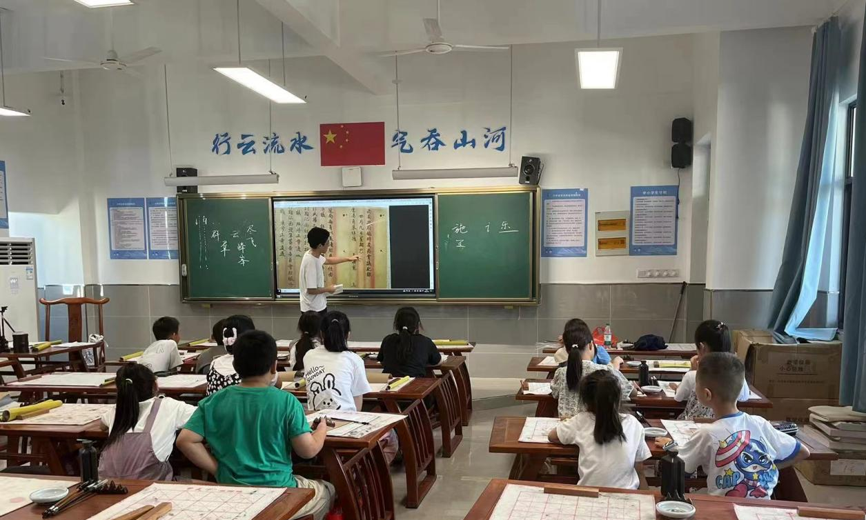 在本次暑期活动中,卢村乡中心小学少年宫共安排了书法、美术、音乐、篮球、信息技术5门课程。作为师范生,成员们一直希望能将教学理论和教学实践相结合,本次在卢村乡中心小学的暑期社会实践就给予了锻炼的机会。成员们提前确定教学方案与人员分工,围绕主题归纳梳理提炼,充分发挥本次社会实践的育人功能。与此同时,成员们在书法、美术、音乐的课程中结合中华优秀传统文化,希望在推动乡村教育德、智、体、美、劳五育并举的同时,增强乡村学生的文化认同和文化自信。