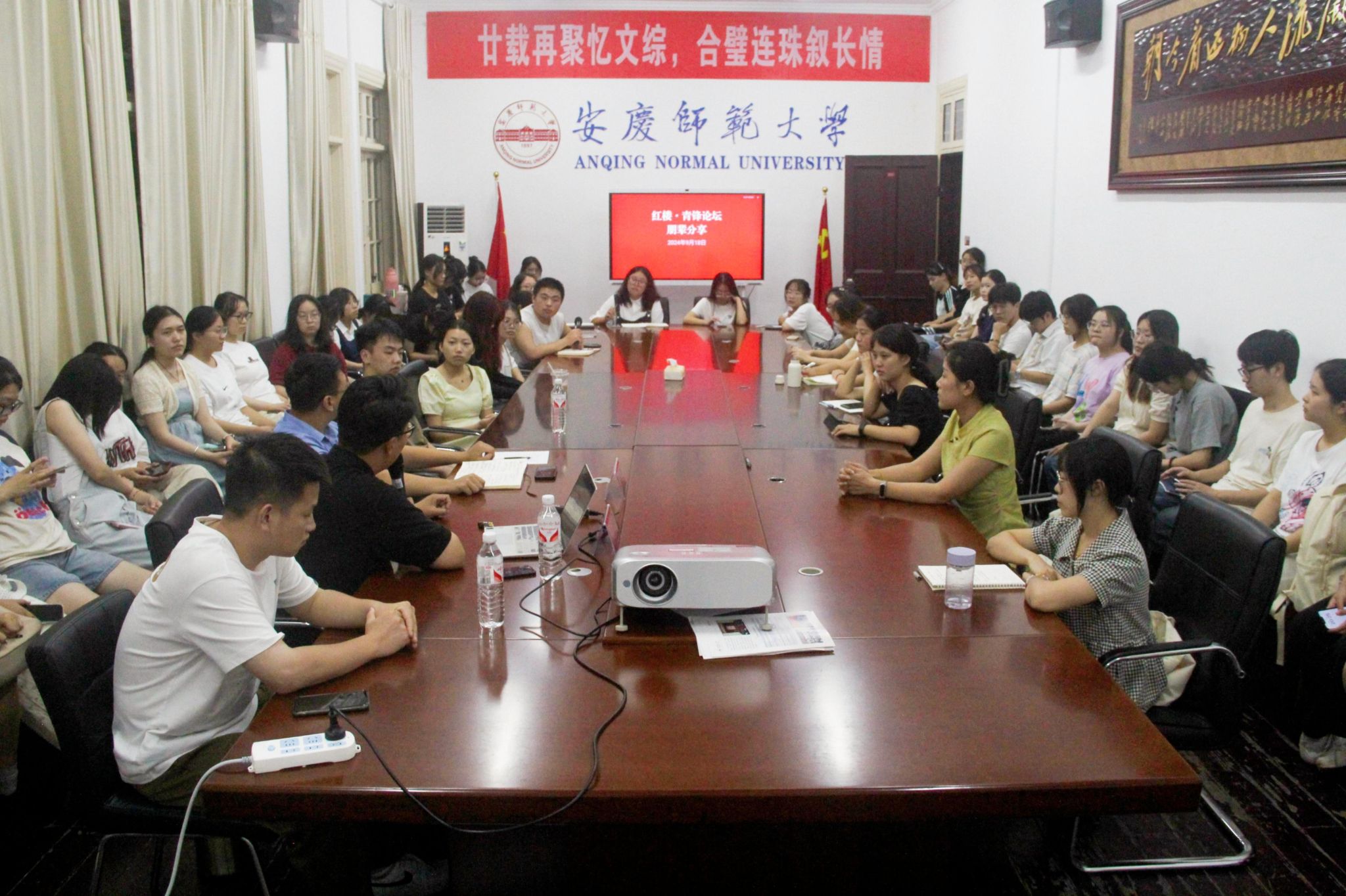 9月18日,英国365集团公司举办“红楼·青锋”论坛九月朋辈交流,论坛邀请到了马克思主义学院2022级硕士研究生、2024年全国“青马工程”高校班学员李宝鑫做分享,青马班近70名学员参会。