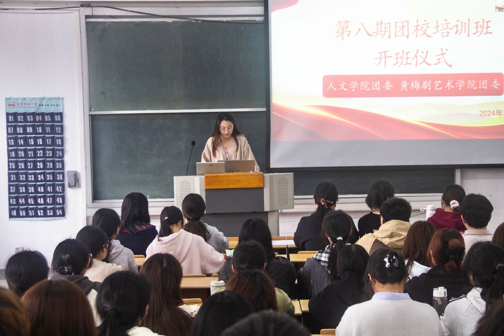 黄梅剧艺术学院团委副书记宣读了团校培训班纪律,要求学生以端正的态度在团课中汲取思想伟力,确保团校培训班的课程的高效运转。