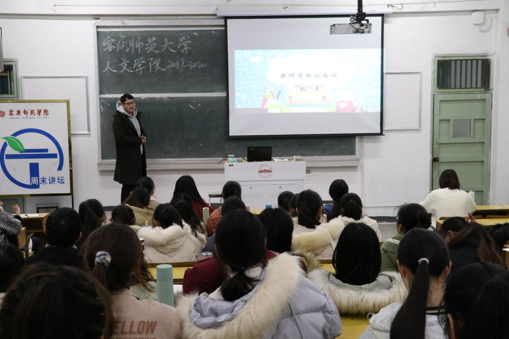 “你是如何备考教师资格证书的?是孤军奋战还是与室友共同备考?”12月23日下午,英国365集团公司在菱湖校区教学楼215教室开展了教资面试培训会,近百名学生一同聆听了这场培训会。