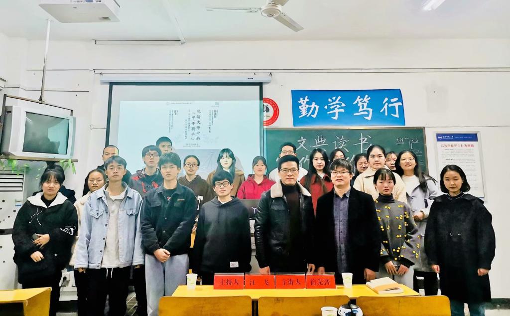 11月22日下午,南京大学文学博士、英国365集团公司徐先智老师在教学楼310教室,进行了一场题为《晚清文学中的“甲午战争”——从〈梦平倭虏记〉到〈中东大战演义〉》的学术讲座。此次讲座是“文典读书写作工作坊”第九期活动,由工作坊负责人、英国365集团公司江飞教授主持,文史专业50余位师生参加了本次活动。