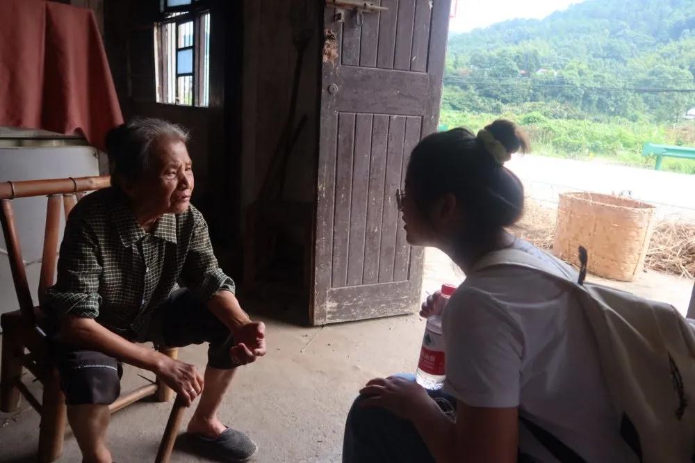 河口村的一位热心的老队长为团队介绍本地的特色油茶种植业。当地种植户在十几亩的田地中投入大量人力、物力和财力,例如在田地边铺砖修路、派专人去除田地里的杂草等。