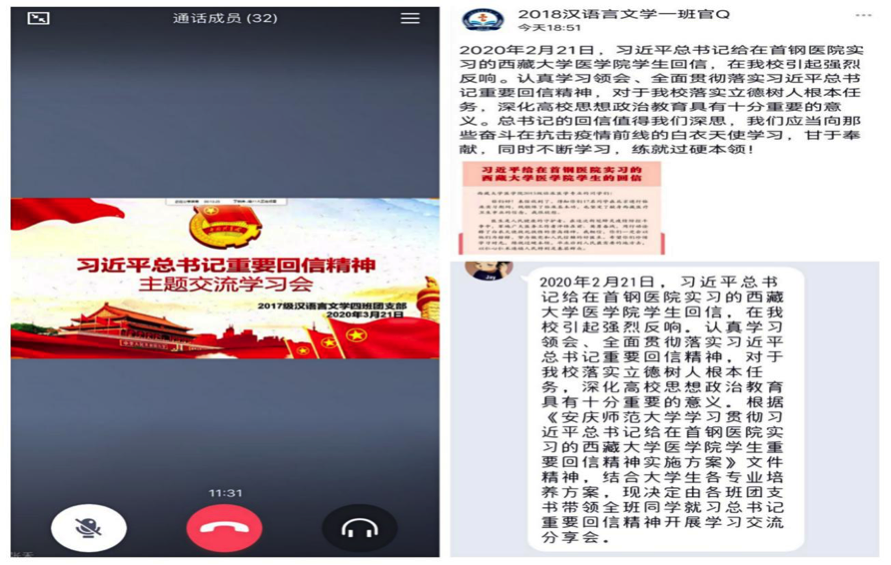 在学习分享活动中,许多同学分享了自己的看法和观点。2019级汉语言文学1班的宫金婷同学认为,新时代的广大青年应该立足基层,扎根人民群众,努力成为国家发展、社会进步、民族富强奠定强大的后备力量。2019级研究生赵莉同学说,作为大学生,我们应当发挥自己的专业特长和力量,积极帮助基层工作人员进行防疫防控工作,做好防疫工作宣传,承担起我们作为公民的责任。