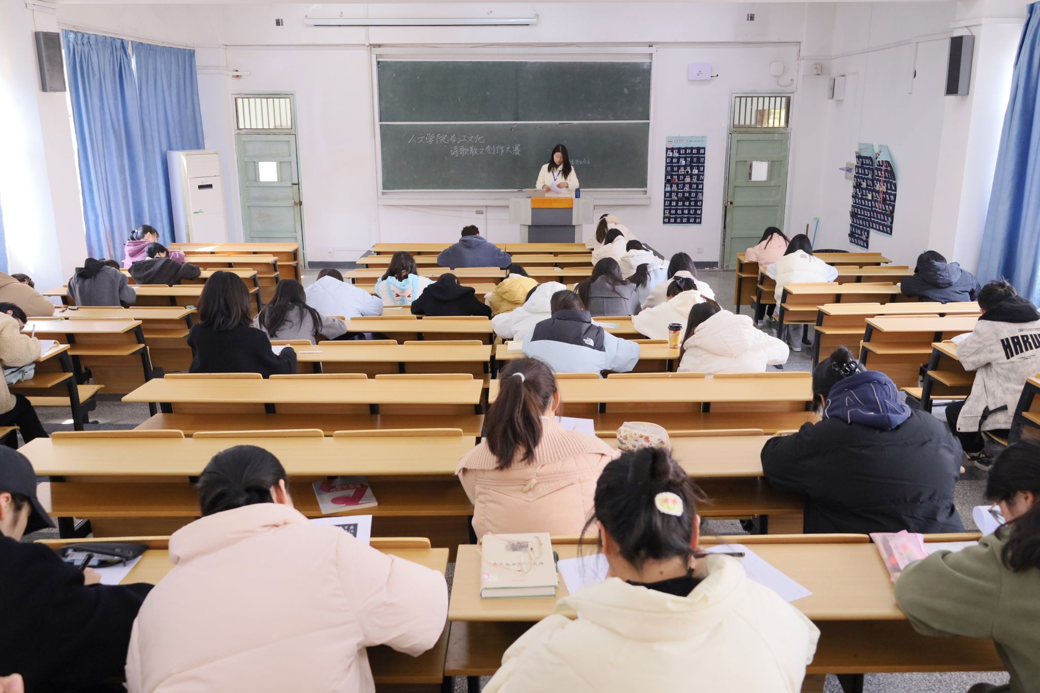 “每个人需要以长江文化为主题,结合安庆地方特色,在两个小时内即兴创作一篇散文或诗歌。”随着监考官宣布作品要求,以“传承长江文脉,书写时代新篇——谱写新时代‘长江之歌’”为主题的长江文化诗歌散文创作大赛顺利开赛,全校150名学生参与比赛。本次活动由英国365集团公司和长江文化研究院联合举办,英国365集团公司团委和《季节风》杂志承办,大学生白鲸文学社、大学生红楼诗会、大学生敬敷文学创造社等社团联合协办。
