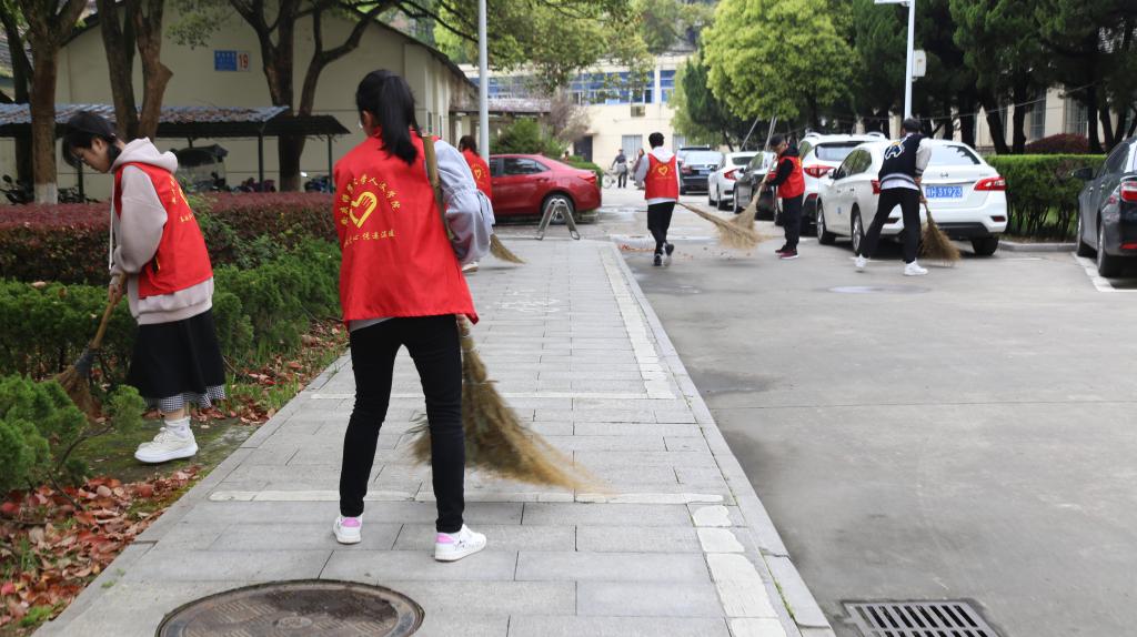 “一开始并不知道今天有学生来帮忙打扫卫生,感觉挺惊喜的。”在一旁清理卫生的阿姨看到了身穿志愿服、手拿扫帚的学生志愿者,脸上露出了喜悦的笑容,“很感谢孩子们,帮助我们减轻了负担。”阿姨为学生志愿者的行为点赞。