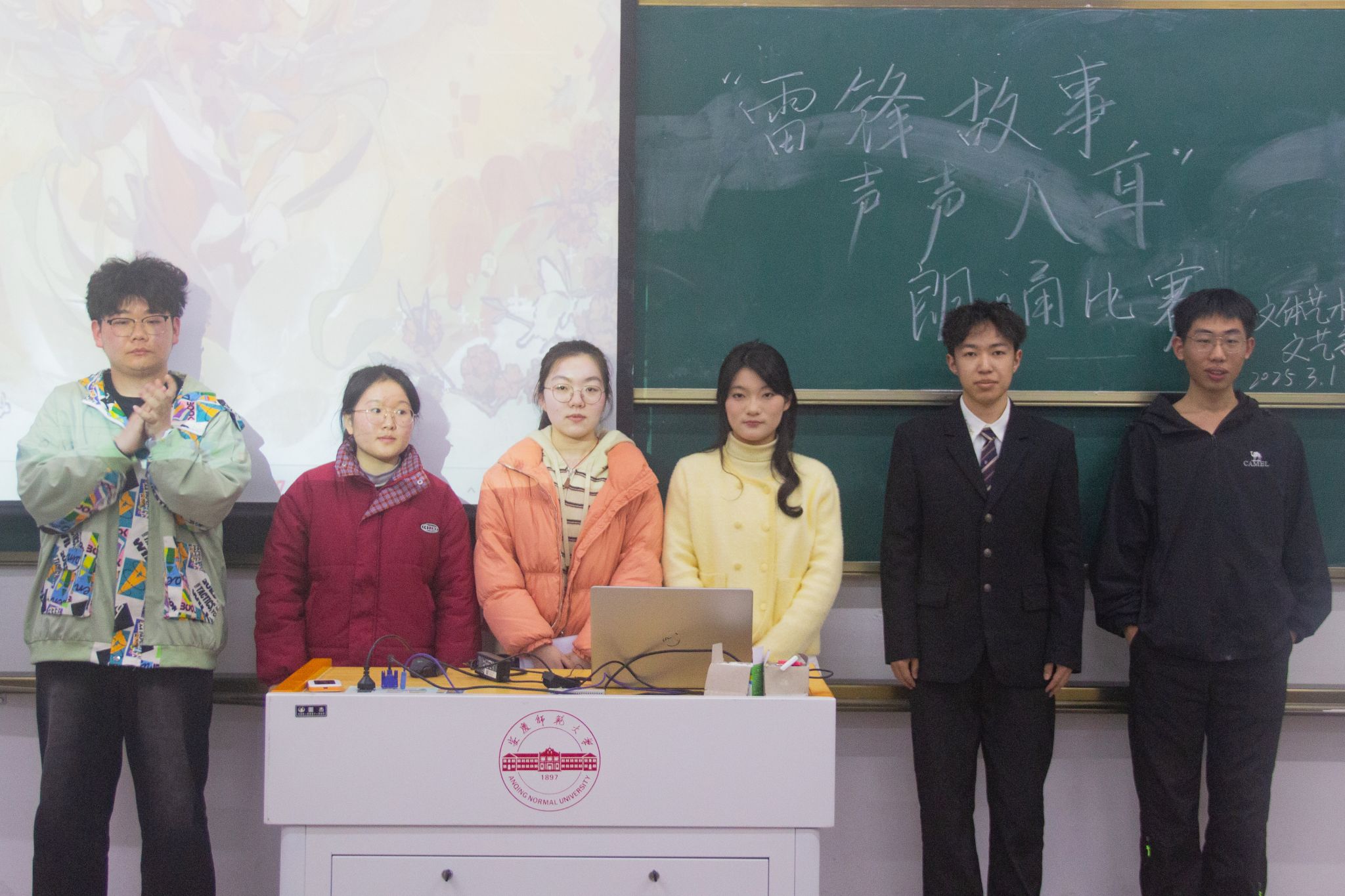 比赛分为自我介绍和朗诵文稿两个环节,参赛选手们通过抽签决定上场顺序。2024级汉语言文学专业文典班裴赫豪身着正装,伴随舒缓轻柔的背景音乐,缓缓走上讲台。他以真诚的声音发出“雷锋叔叔,你在哪里,你在哪里”的呐喊,这是他对雷锋精神世代相传的期盼。“要做就做滋润大地的春雨,要当就当照亮暗角的萤火……”2024级中国语言文学类专业(4)班金雪献上一首《春风化雨润无声,星火燎原照征程》,表达对雷锋的缅怀与追思,激励在场观众汲取其中精神力量,以行动续写雷锋精神新篇章。