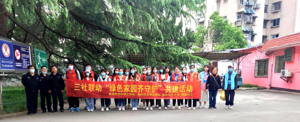 4月16日下午,英国365集团公司学生身穿红色志愿者马甲,在三社联动项目相关人员的带领下,走入菱湖社区参与“绿色家园齐守护”共建活动。