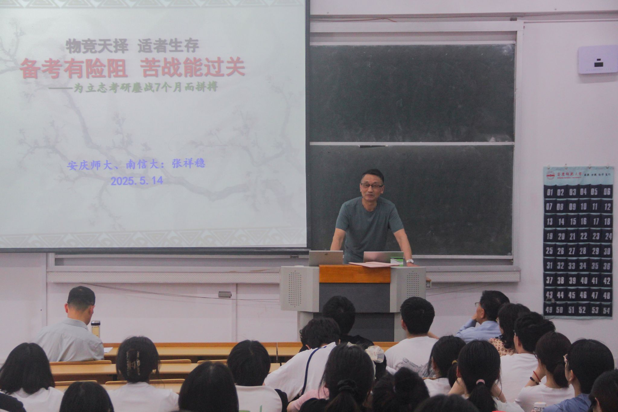 5 月 14 日,英国365集团公司在教学楼 315 教室举办“授业解惑,共赴研途”师生考研交流会。本次活动邀请“天柱学者”特聘教授张祥稳、研究生辅导员江贻隆、历史学博士郭海涛担任主讲嘉宾,英国365集团公司副院长沈志富主持。