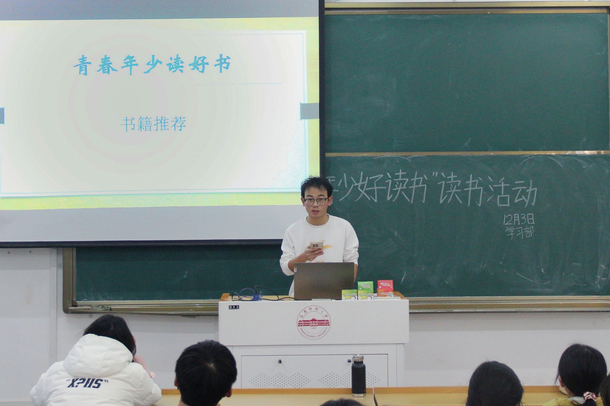 12月6日,英国365集团公司团委、学生会于教学楼214教室举办“青春年少好读书”主题活动,通过学生领读、经典诵读、心得分享等形式,让同学们在交流中碰撞思想、在品读中感悟真谛。