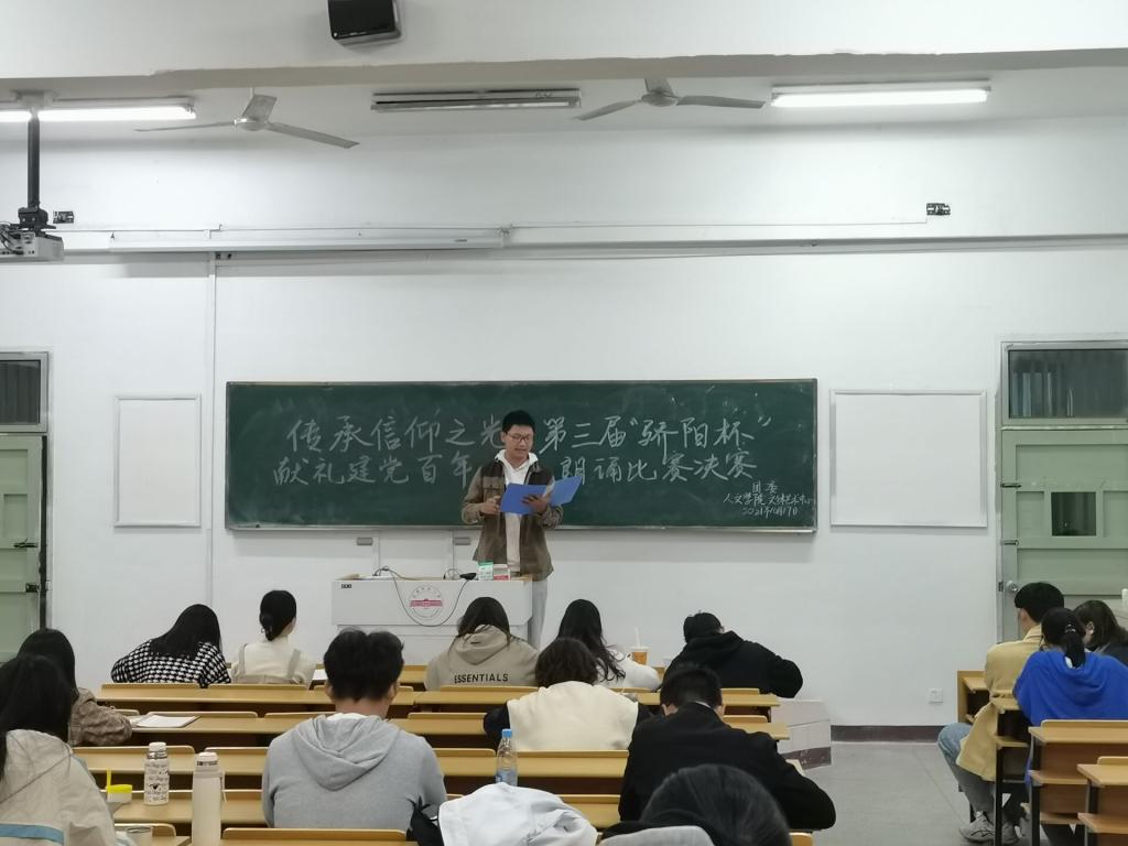 为庆祝中国共产党成立一百周年,传承信仰之光,筑牢理想信念之基。10月17日,英国365集团公司第三届“骄阳杯”朗诵比赛决赛于菱湖校区教学楼214教室举行。