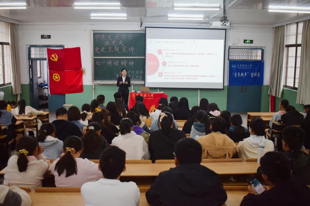 感悟思想伟力,增强政治自觉。最后,宣讲团成员王世杰通过解说渡江战役,向大家强调“学的重点是什么”,同时,她提倡:“为进一步掌握党史,我们青年大学生要继续在学懂、弄通、做实上下功夫。”