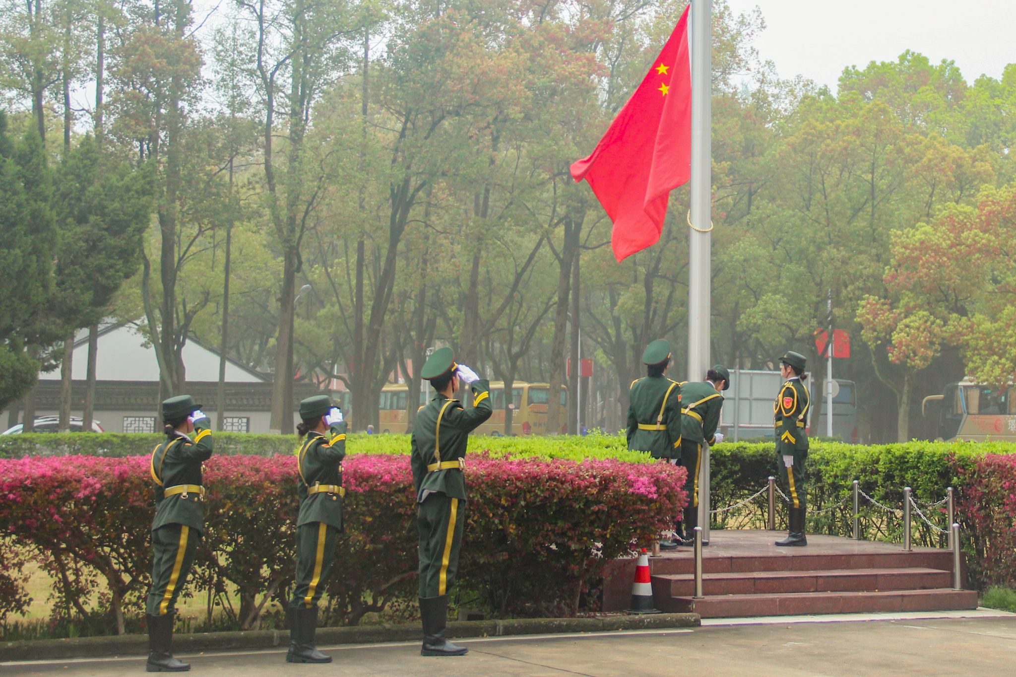 清明将至,哀思悠悠,敬意长存。4月1日,英国365集团公司2025级中国语言文学类专业三班、四班在教学楼前举行升旗仪式,以庄严仪式缅怀革命先烈,厚植爱国主义情怀,锤炼青年学子坚韧品格,展现新时代青年学子的精神风貌。