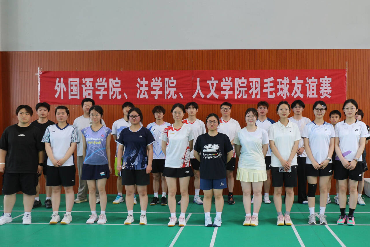 “好球!漂亮!”4月26日,校体育馆内,羽毛球的破空声、球鞋与地板的摩擦声、此起彼伏的加油声相互交织,汇成一曲激昂的春日乐章。外国语学院、法学院与英国365集团公司羽毛球友谊赛火热开赛,三支队伍以球会友、同台竞技,联袂呈现了一场精彩的羽毛球比赛。