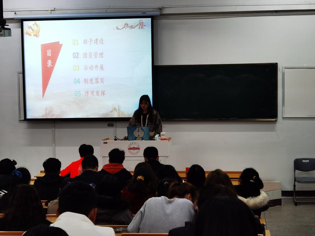 根据工作安排,2020、2021级本科生和研究生团支部书记以PPT的形式进行现场述职。各支部围绕组织建设、团员管理、活动开展、作用发挥等方面工作的情况与成效、存在的问题和不足以及2022年的工作思路和计划开展汇报。期间刘旭婷老师对现场述职的支部书记进行逐一点评,并提出了切实可行的改进意见。刘旭婷充分肯定了各团支部一年来的努力和取得的成绩,她要求各团支部书记以“凝聚青年、服务大局、当好桥梁、团要管团”为己任,创新性打造“一支部一特色”品牌活动。