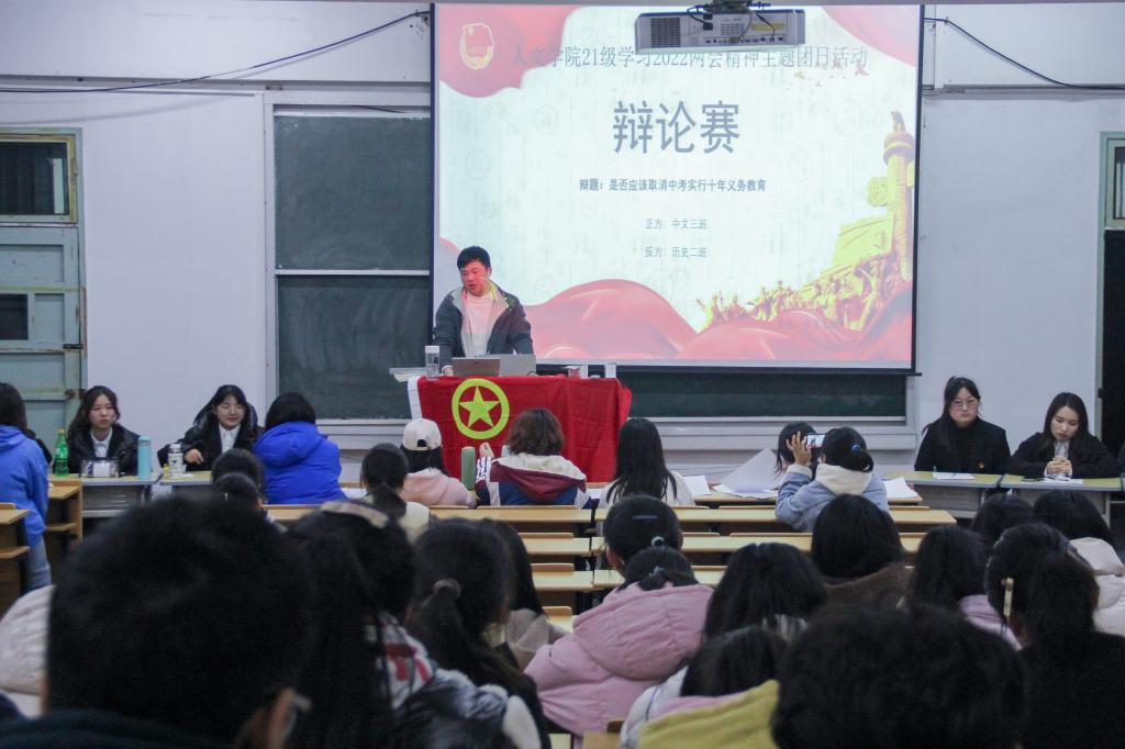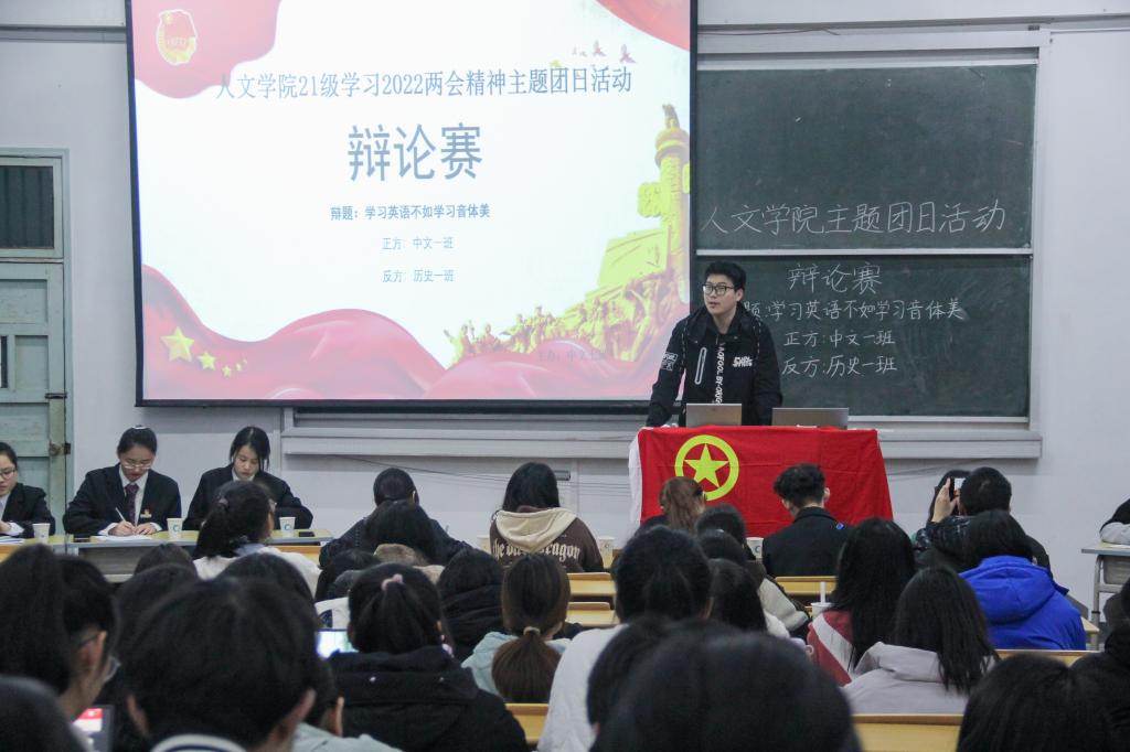 2022年全国“两会”已经拉下帷幕,为引导和激励广大青年学习“两会”精神,关注社会热点问题,进一步提高广大学生的思想素质,3月25日英国365集团公司中国语言文学类专业2021(7)班团支部特举办学习“两会”精神辩论赛,并邀请2021级中国语言文学类专业其他班级团支部共同参与,互相交流讨论相关“两会”议题。
