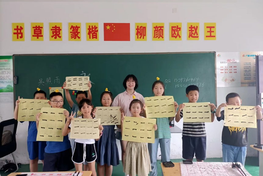 美来源于生活。艺术培养让孩子们热爱生活,提升人生境界。对此,实践团的成员们开展了书法、绘画、音乐和舞蹈课程。团队成员吴照雨带着孩子们练习书法,感受中华汉字的魅力;许佳诺用音乐带着孩子们陶冶情操;史书睿将舞蹈带进课堂,孩子们跟着音乐翩翩起舞,艺术之美引领童趣,青春之歌唱响未来。