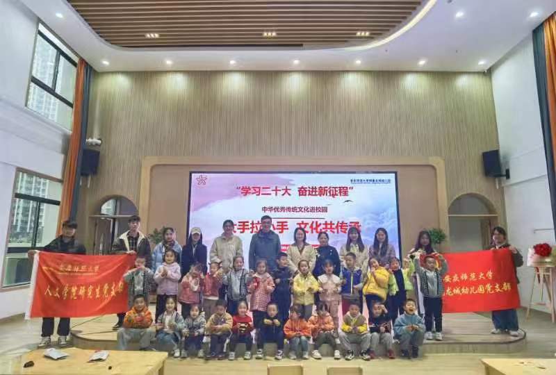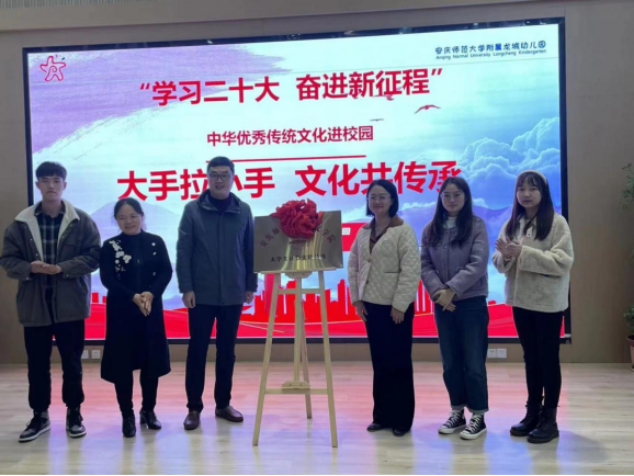 11月16日,“中华优秀传统文化进校园——大手拉小手,文化共传承”活动暨实践教学基地揭牌仪式在学校附属龙城幼儿园举行,英国365集团公司党委副书记王波,附属龙城幼儿园园长姚萍出席活动,并为基地揭牌。英国365集团公司卢娇博士、团委人潘源、研究生党支部及及幼儿园骨干教师参与活动。