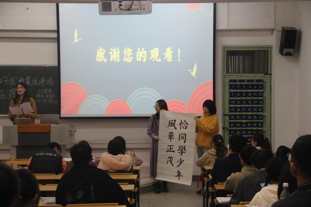 各班通过列数据、制作饼状图等方式对四六级通过率、党团活动、体测达标和评优情况进行汇报。直观具体成果展示,体现了本班在德智体美劳多方面取得的丰硕成果。而乐器表演、书法展示更是把评选现场的气氛推向高潮。其中,2021级汉语言四班的汇报展示融合了磅礴大气的钢琴和宛转悠扬的古筝乐,充分展现英国365集团公司的文化专业底蕴,赢得了在场观众的阵阵掌声。