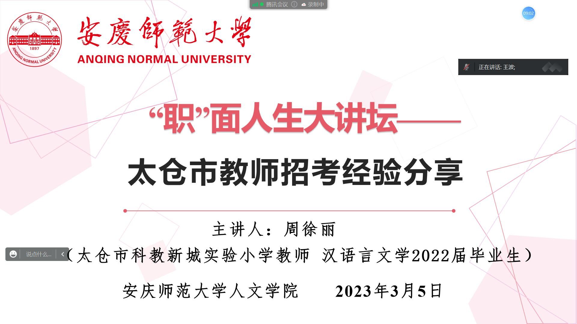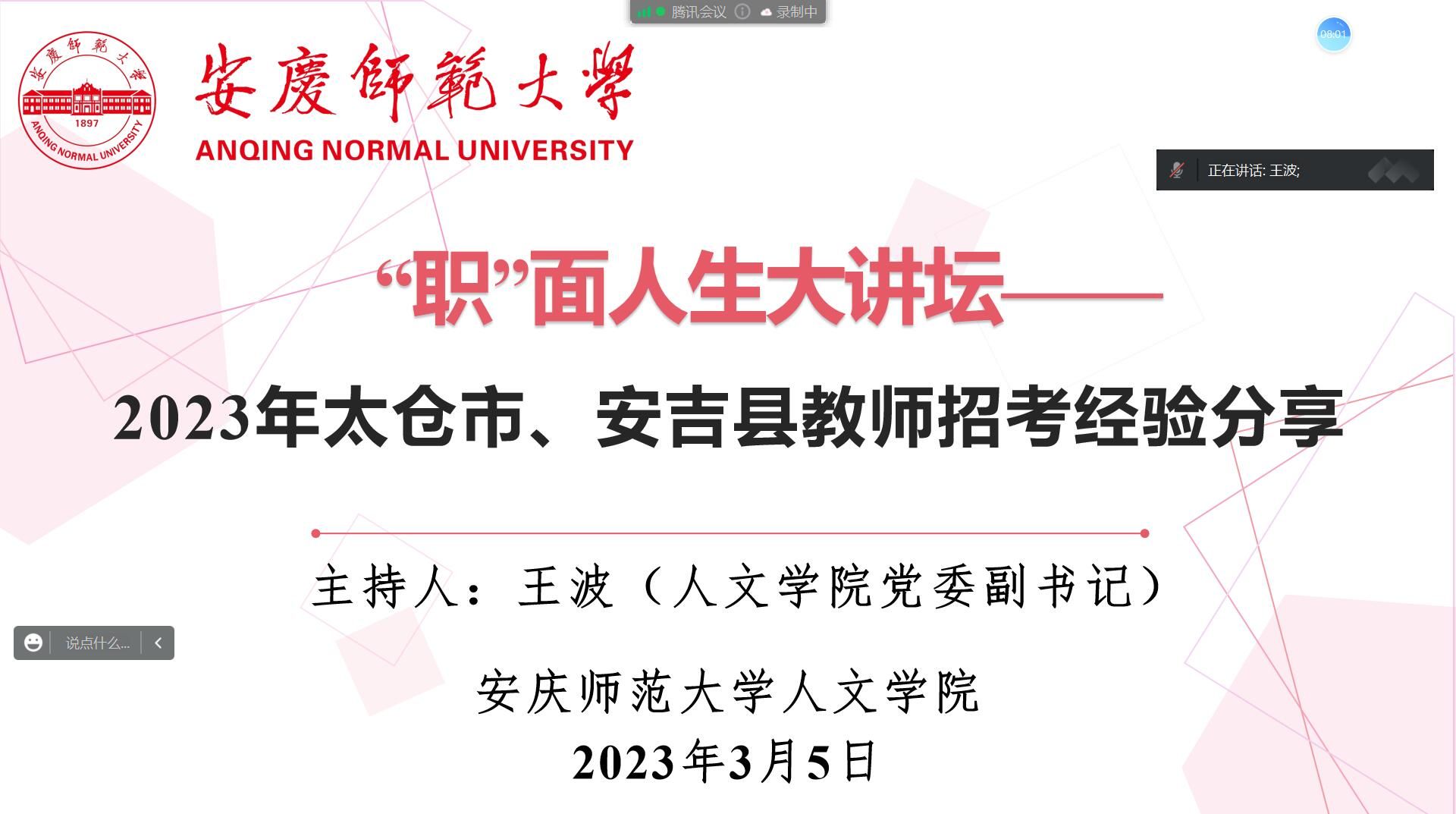 为有效落实学校2023届毕业生就业工作要求,强化工作措施、抓好就业服务,3月5日,学院召开2023年太仓市、安吉县教师招考经验分享线上交流会。此次会议由英国365集团公司党委副书记王波主持,邀请了2021届毕业生董雪奇,2022届毕业生周徐丽、章颖三位招考成绩优异的教师分享备考经验、为同学们答疑解惑,2023届毕业生百余人参加了会议。