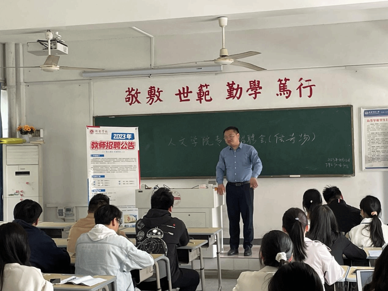 衡安学校办公室主任杨蔚从办学理念、教学成果、薪资待遇等方面对学校作了简要介绍,激起前来应聘学生的热情。
