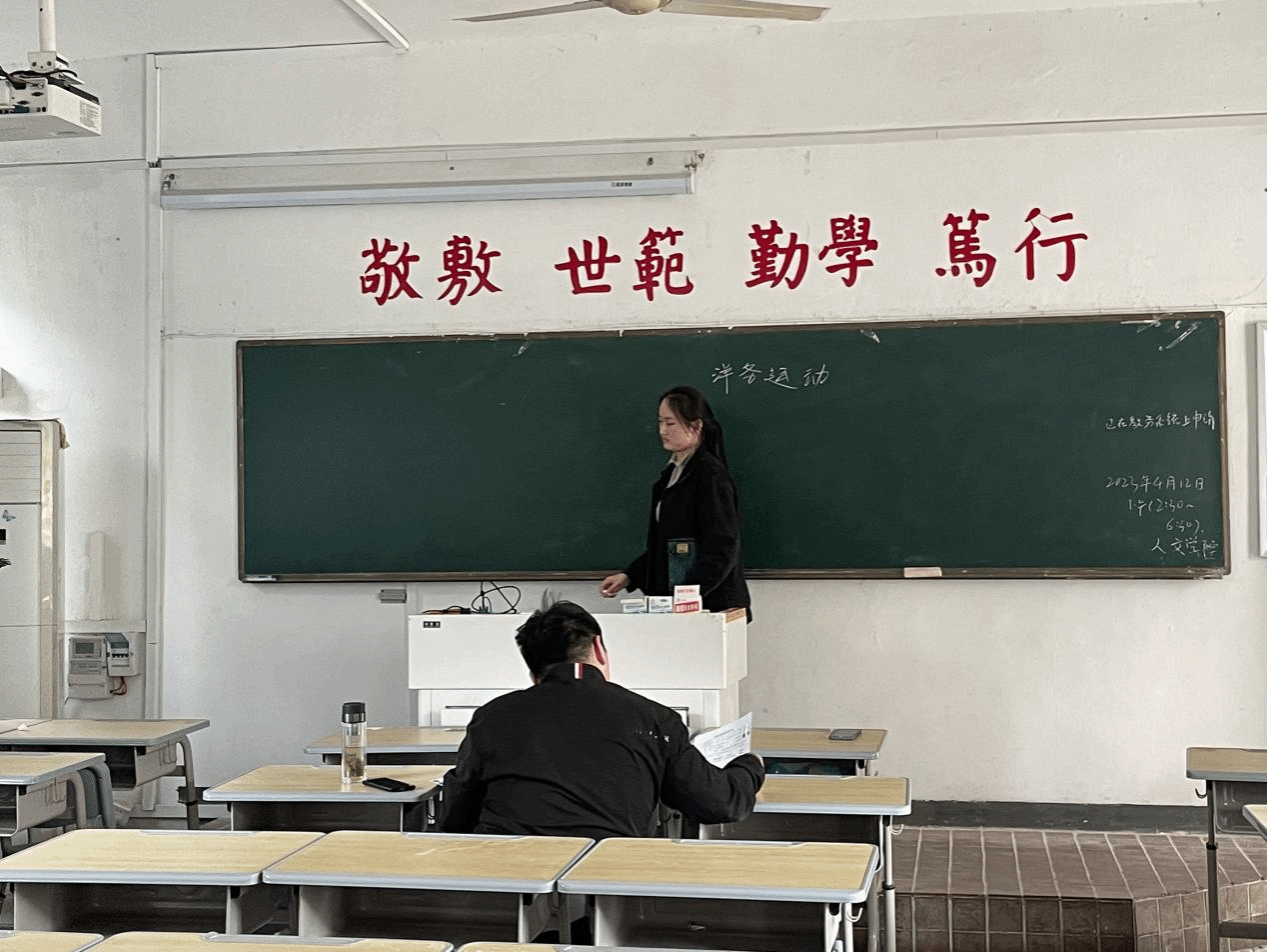 宣讲后,招聘会开始正式进行,现场秩序井然,毕业生们提交信息登记表,依次排序进行抽课、试讲。