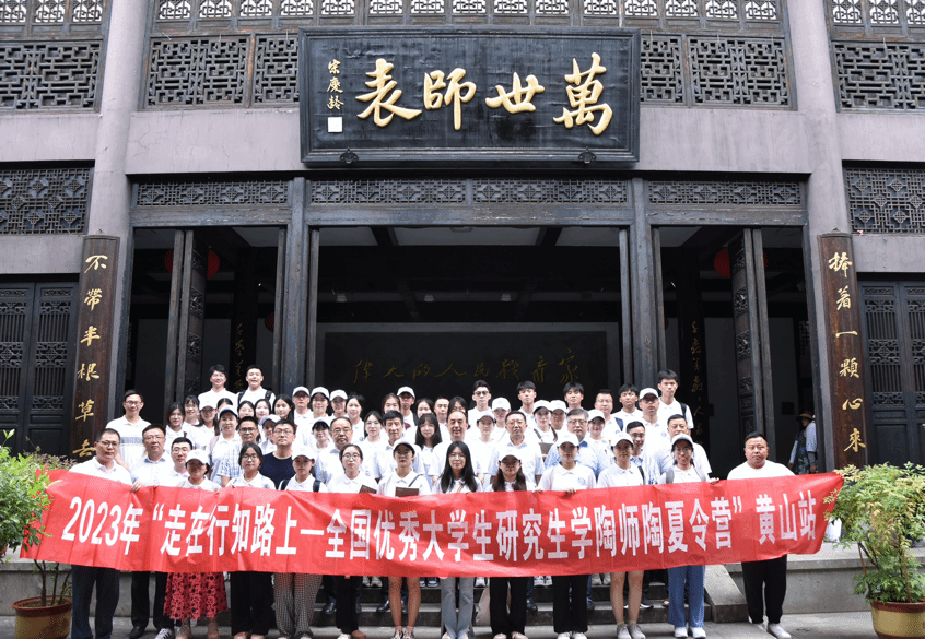 2023年7月21—22日,由华中师范大学、南京大学、南京晓庄学院和黄山学院等学校共同发起,黄山学院承办的“走在行知路上——全国优秀大学生研究生学陶师陶夏令营”在安徽黄山举行。此次夏令营走进歙县、休宁两地,在人民教育家陶行知先生生活和成长的地方学习观摩、体验感悟。来自全国32所高校的大学生研究生参加了夏令营活动。英国365集团公司2022级研究生汪越同同学获推荐参加活动。