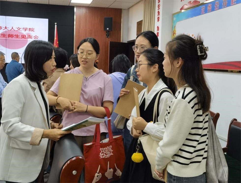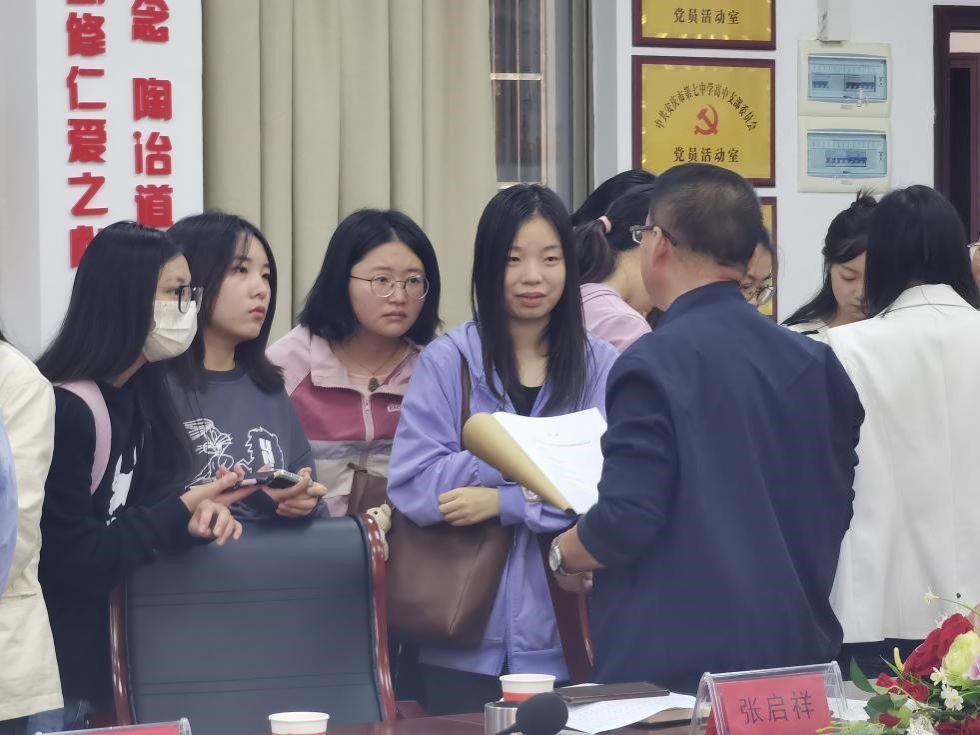 会上,校外导师代表、安庆七中张启祥老师从深追敬敷精神、踏实研究行动、传承皖风皖韵学风三个层面对接下来的研究生实践学习提出了建议。学科教学(语文)、学科教学(历史)2023级研究生与校外导师进行了亲切友好的深入交谈。