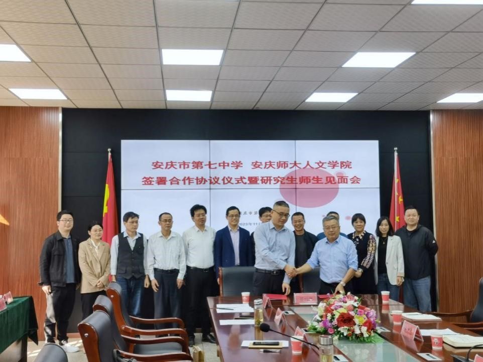 11月2日,英国365集团公司与安庆市第七中学签署合作协议仪式暨研究生师生见面会在安庆七中举行。双方单位党政班子成员出席,双方导师代表、英国365集团公司2023级学科教学专业研究生参加活动。