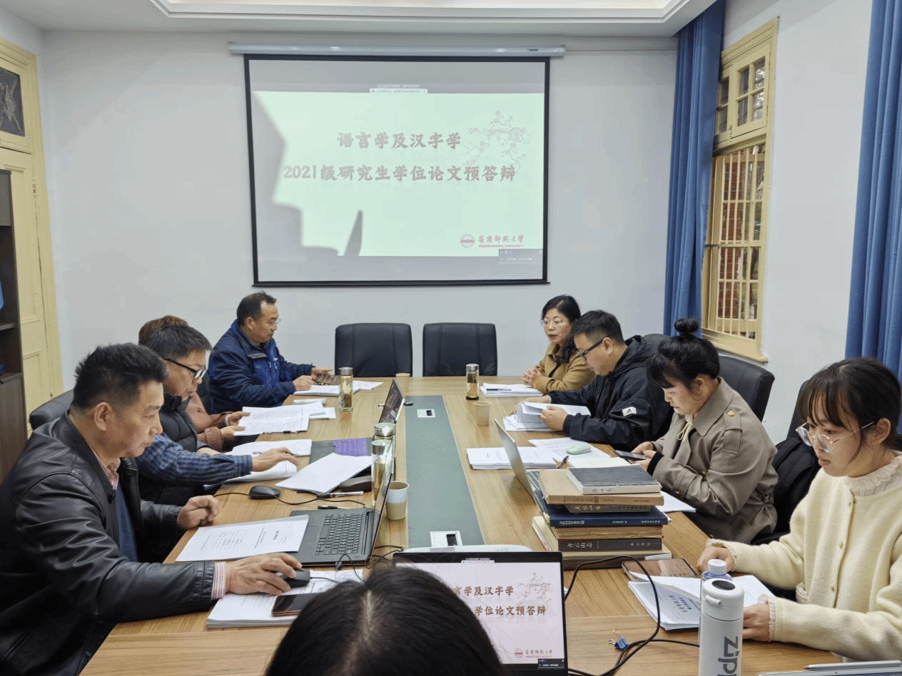 3月27日下午,英国365集团公司语言学及应用语言学、汉语言文字学学科在红楼106会议室举行2021级硕士研究生学位论文预答辩会。会议由鲍红教授主持,代少若教授、李明教授、陈世庆教授、白俊骞教授、张莹副教授、李向华副教授、曹维平博士和语言学、文字学全体硕士研究生参与会议。