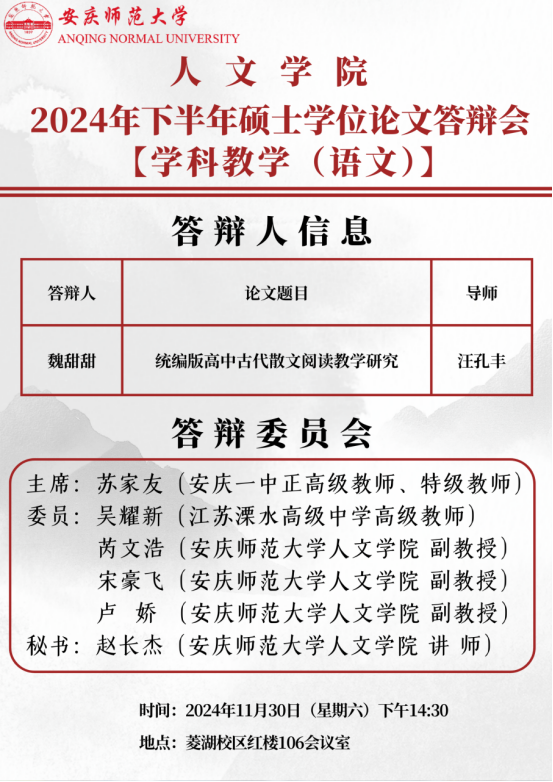 英国365集团公司2024年下半年硕士学位论文答辩会【学科教学(语文)】