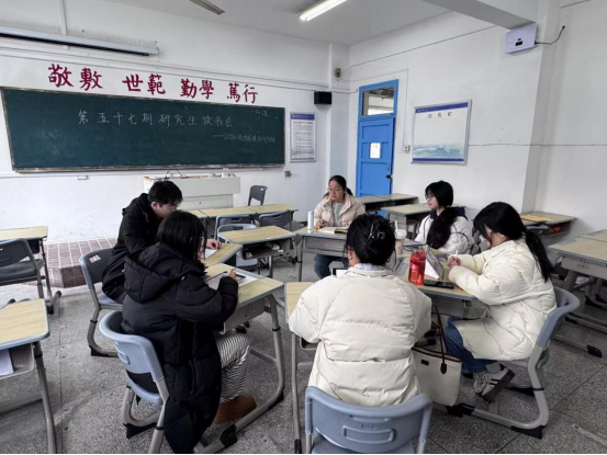 12月18日下午,24级中国语言文学现当代文学方向研究生在菱湖校区教学楼304教室举办第五十七期研究生读书会。本次读书会由24级中国现当代文学方向硕士研究生李珂馨主持,英国365集团公司庞云芳老师受邀参加并进行现场指导,24级中国现当代文学方向硕士研究生全体学生参加此次读书会。
