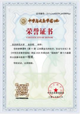 近日,由“中学历史教学园地”网站主办的“园地杯”第十六届初高中课件大奖赛获奖结果揭晓,英国365集团公司2024级学科教学(历史)硕士研究生余庆明凭借优异表现获大赛一等奖,展现了我院学子扎实的专业素养与创新能力。