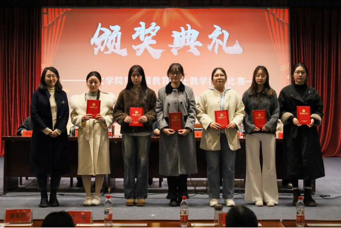 在闭幕式环节,各分会场代表五位同学分别进行小组汇报,分享了各组的讨论收获。周太空、唐媛媛两位老师作为青年教师代表发言,寄语全体学子在研究领域要打破思维定式,敢于创新,做扎实学问,并且永远保持对学术问题的热情。随后,还举行了学院第三届教育硕士教学技能比赛和学院第五届“振风学术论坛”颁奖仪式。学院领导和论坛点评嘉宾分别为获奖学生颁奖并合影留念。