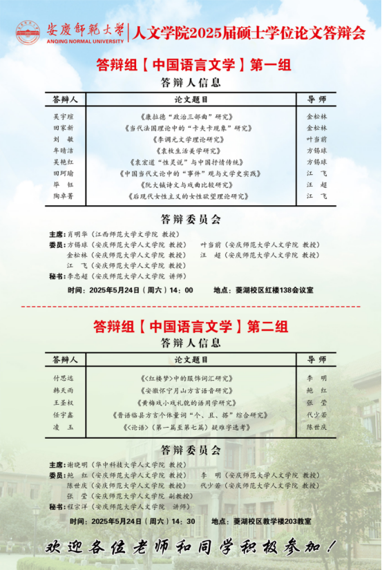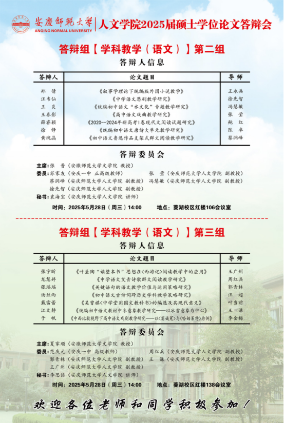 英国365集团公司2025年上半年硕士研究生学位论文答辩工作安排【中国语言文学组、中国史组、学科教学(语文)组、学科教学(历史)组】