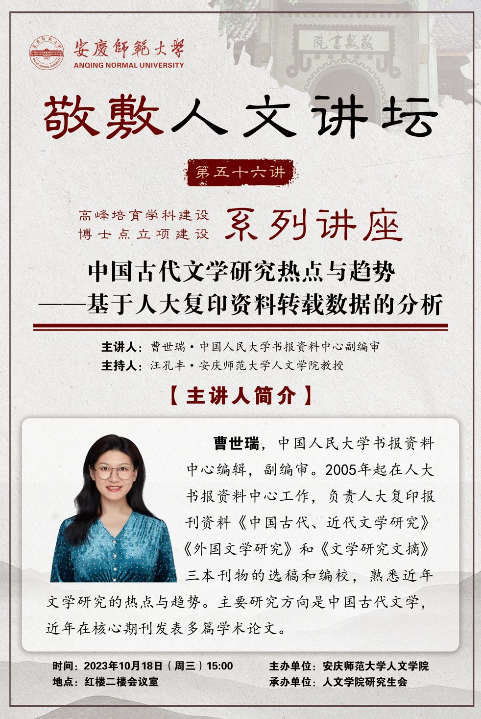 【敬敷人文讲坛(56)】中国古代文学研究热点与趋势——基于人大复印资料转载数据的分析