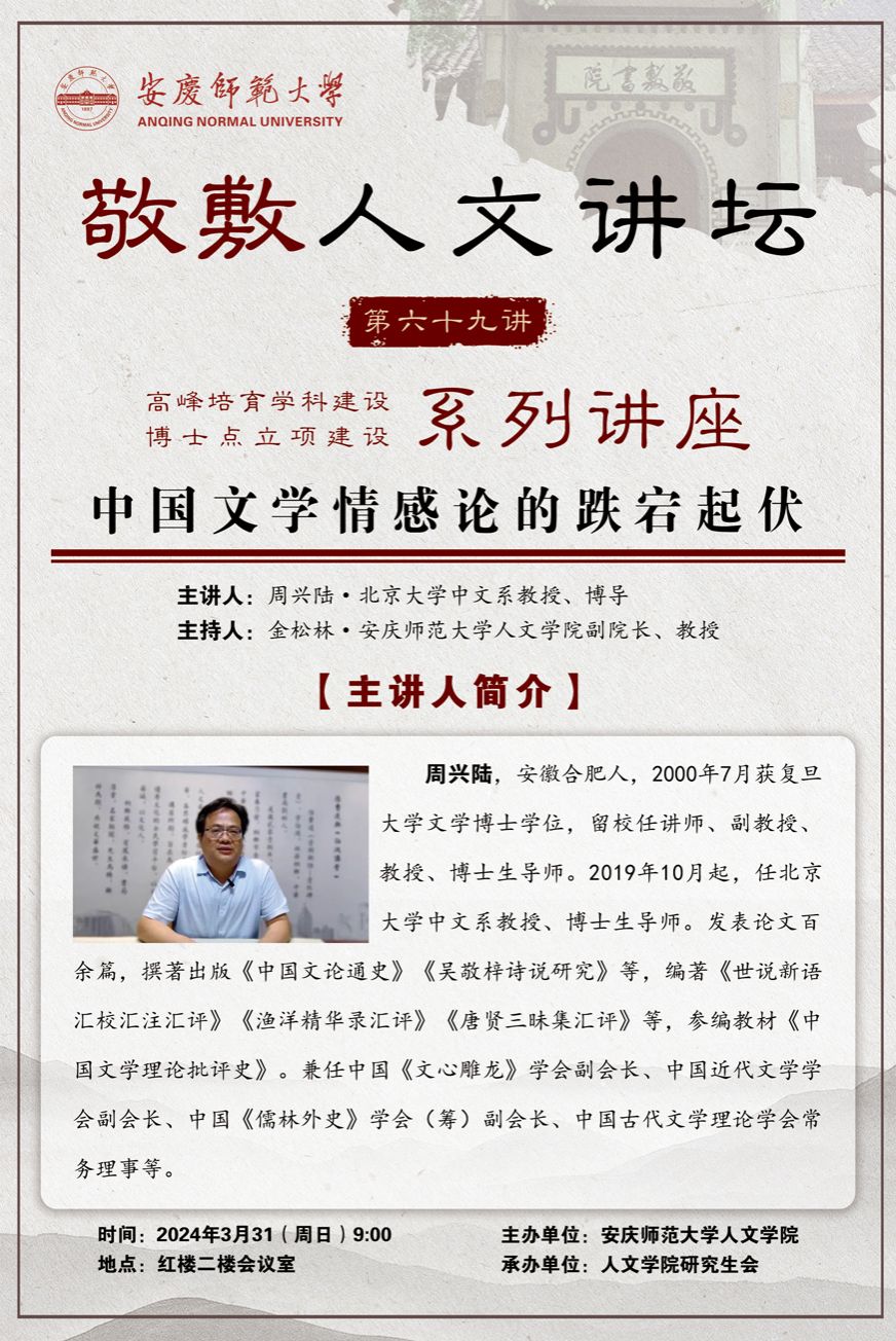 【敬敷人文讲坛(69)】中国文学情感论的跌宕起伏