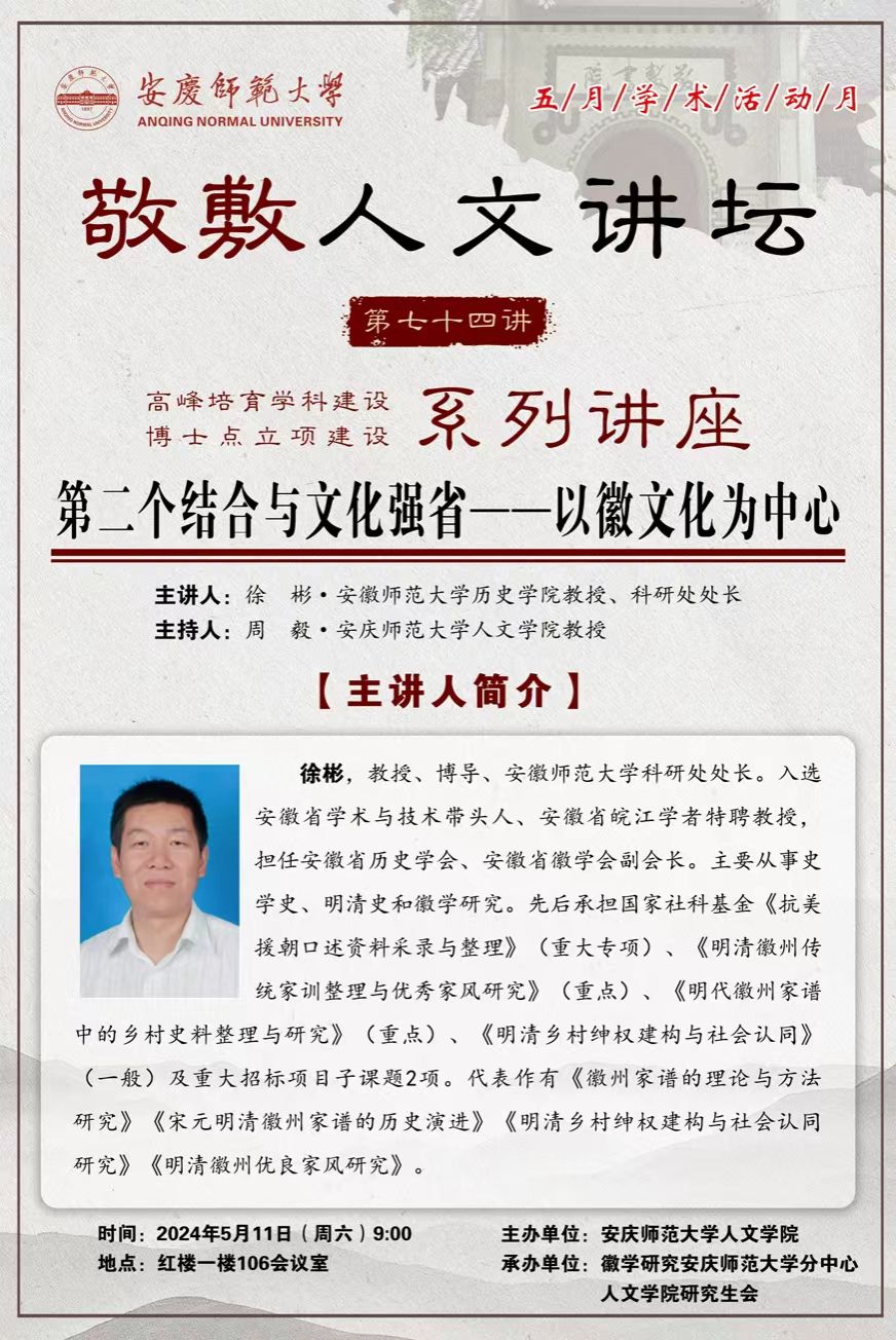 【敬敷人文讲坛(74)】第二个结合与文化强省——以徽文化为中心