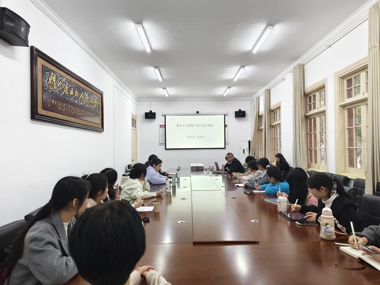 11月24日,北京大学中国古文献研究中心副主任杨海峥教授应邀做客敬敷人文讲坛,在菱湖校区红楼二楼会议室作了题为“数字人文背景下的古典文献学”的学术讲座。讲座由院长汪孔丰教授主持,芮文浩副教授担任与谈人,我院部分教师及研究生、本科生参加了此次活动。