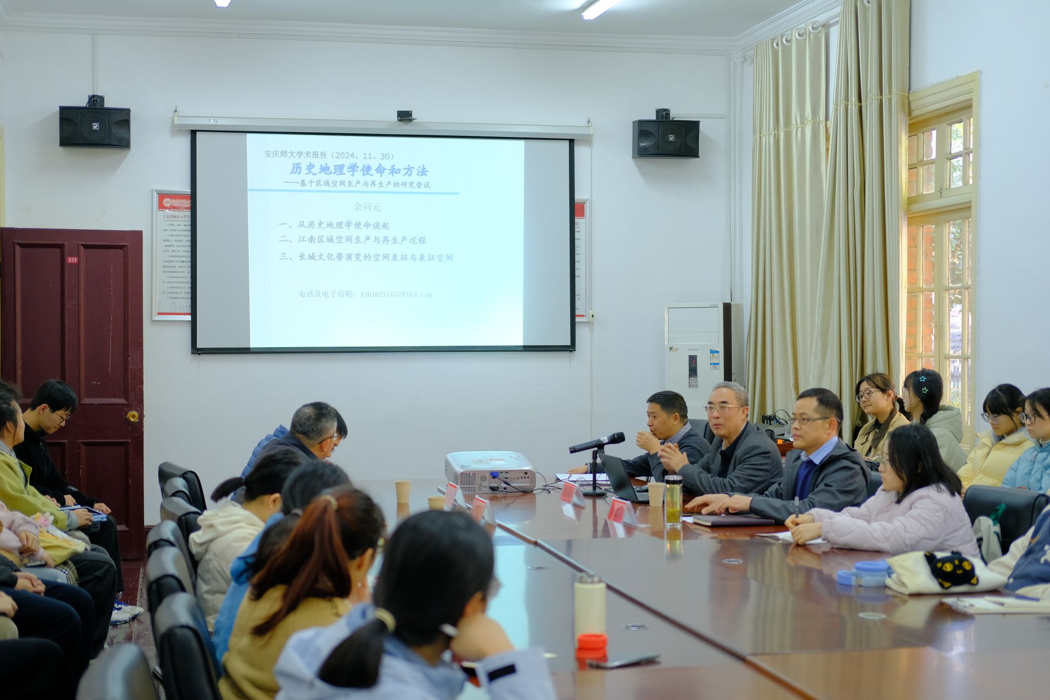 11月30日,苏州大学社会学院历史系博士生导师、国学研究所所长余同元教授应邀做客敬敷人文讲坛,在菱湖校区红楼二楼会议室为师生们带来了一场题为“历史地理学使命和方法——基于区域空间生产与再生产的研究尝试”的学术讲座。本次讲座由英国365集团公司副院长沈志富教授主持,解春龙、胡世明博士为与谈人,学院相关专业本科生、研究生参加此次讲座。