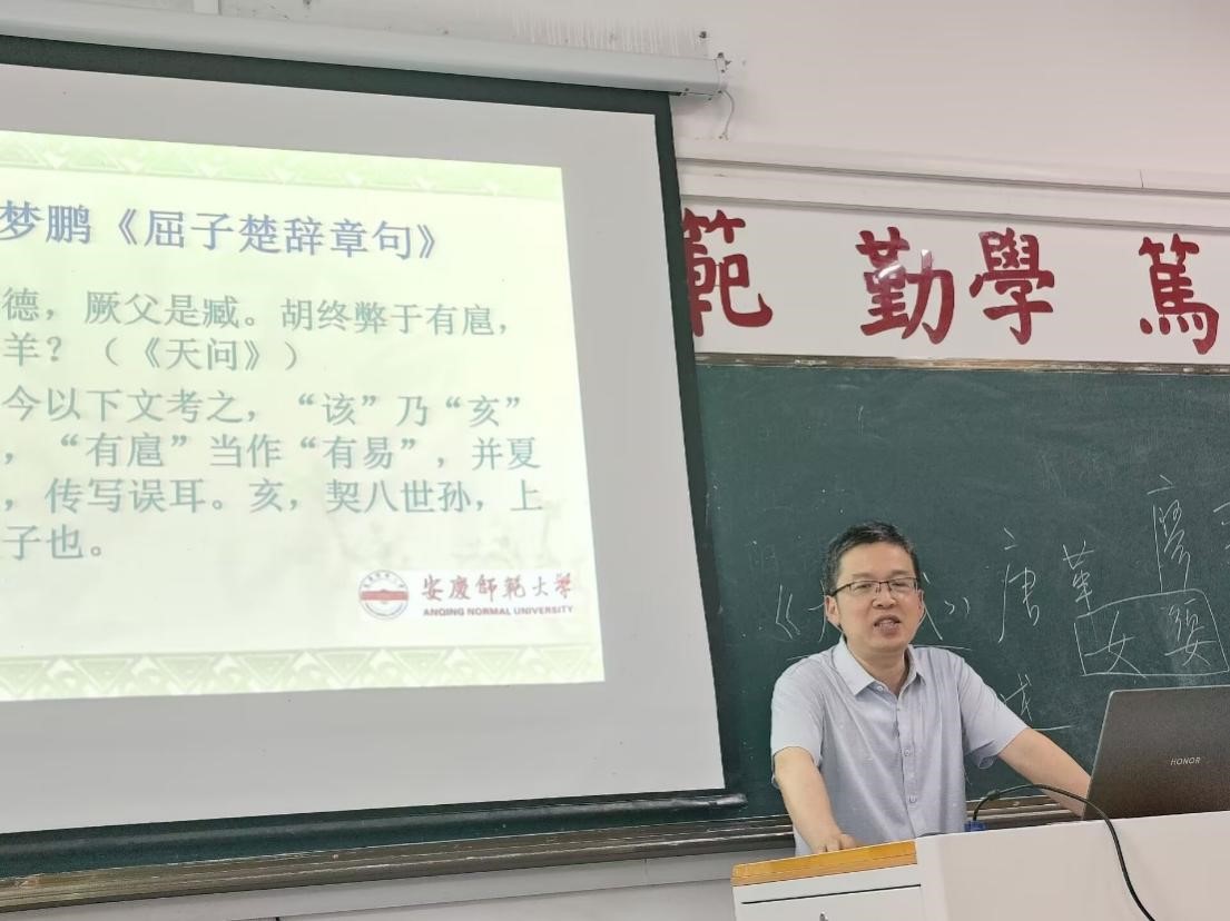 5月20日下午,第34期菱湖学术沙龙在304教室举行,英国365集团公司谢模楷教授作“屈原及其楚辞研究的困境与思考”的报告,英国365集团公司赵长杰博士担任主持人,2023级文典班全体同学聆听了谢老师的精彩演讲。