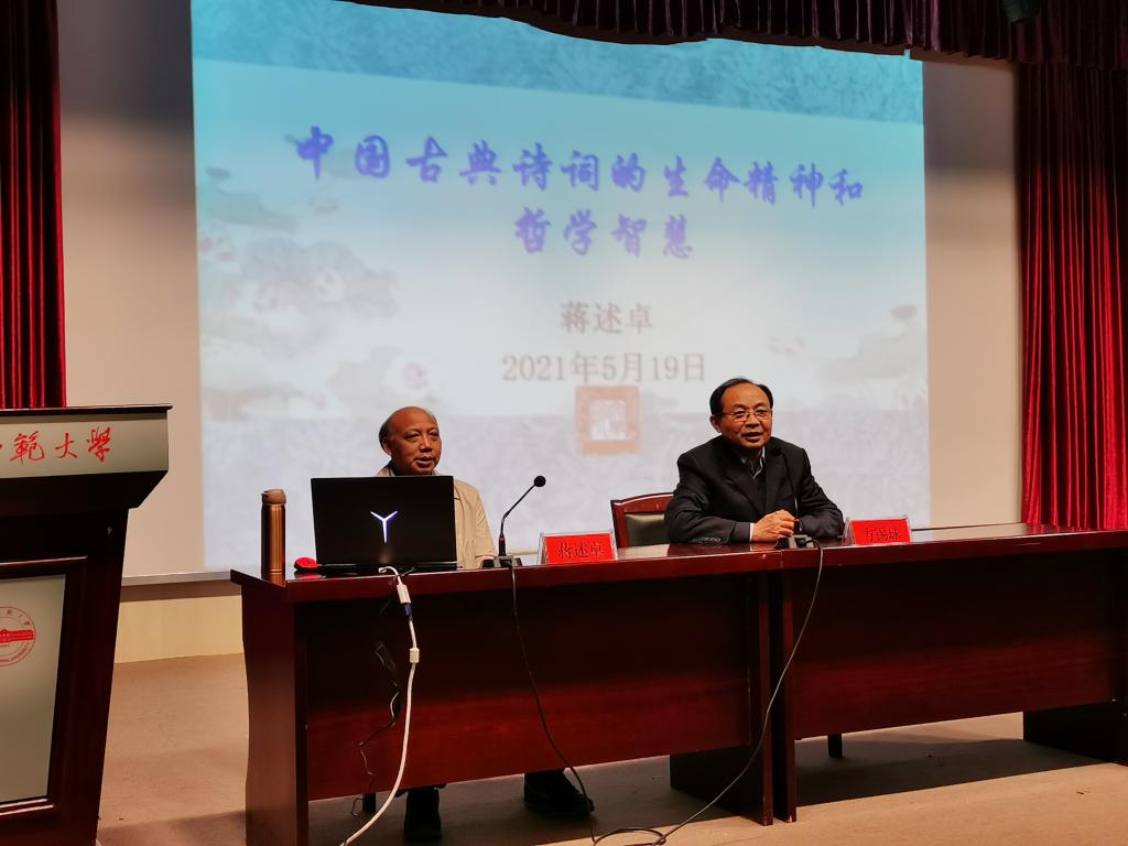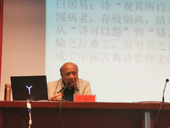 5月19日下午,暨南大学中文系二级教授、博士生导师蒋述卓教授在菱湖校区图书馆报告厅做了题为“中国古典诗歌的生命精神和哲学智慧”的学术讲座。讲座由英国365集团公司方锡球教授主持,汉语言文学专业本科生、研究生近200人参加了本次报告会。
