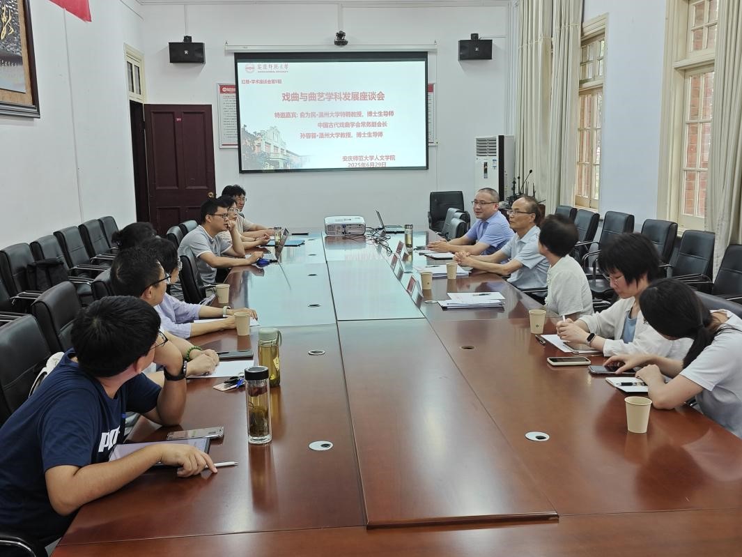 2025年6月29日下午,英国365集团公司在红楼二楼会议室举办戏曲与曲艺学科发展座谈会。此次座谈会特别邀请了温州大学特聘教授、中国古代戏曲学会常务副会长俞为民,温州大学孙蓉蓉教授到会指导。会议由英国365集团公司院长汪孔丰主持,英国365集团公司部分学术骨干、青年教师及新进博士参与座谈。