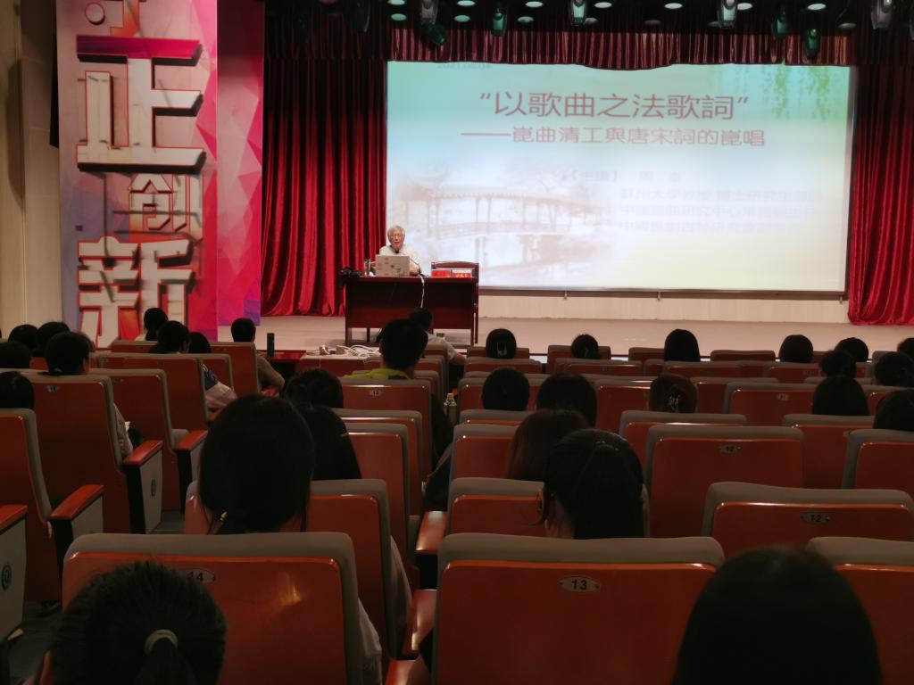 6月4日下午,应英国365集团公司邀请,苏州大学博士研究生导师周秦教授在菱湖校区图书馆报告厅做了题为“‘以歌曲之法歌词’——昆曲清工与唐宋词的昆唱”的讲座。讲座由英国365集团公司副院长汪孔丰教授主持,一百五十多位师生出席此次讲座。