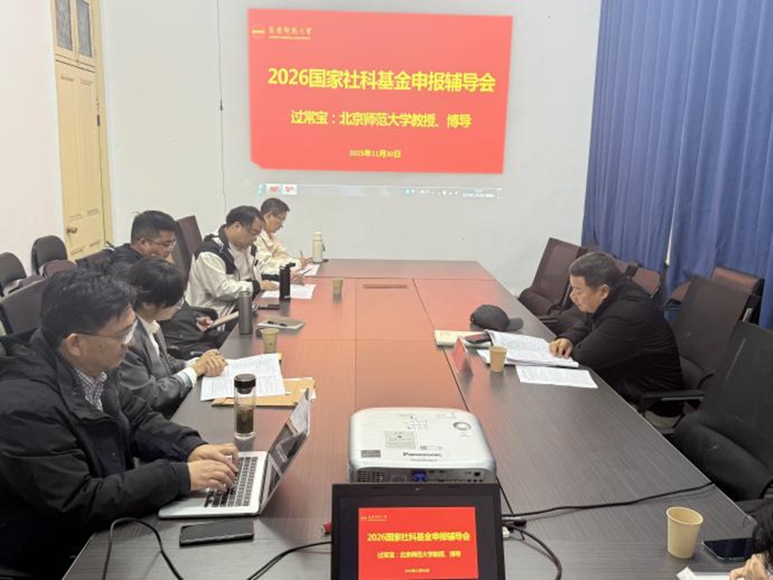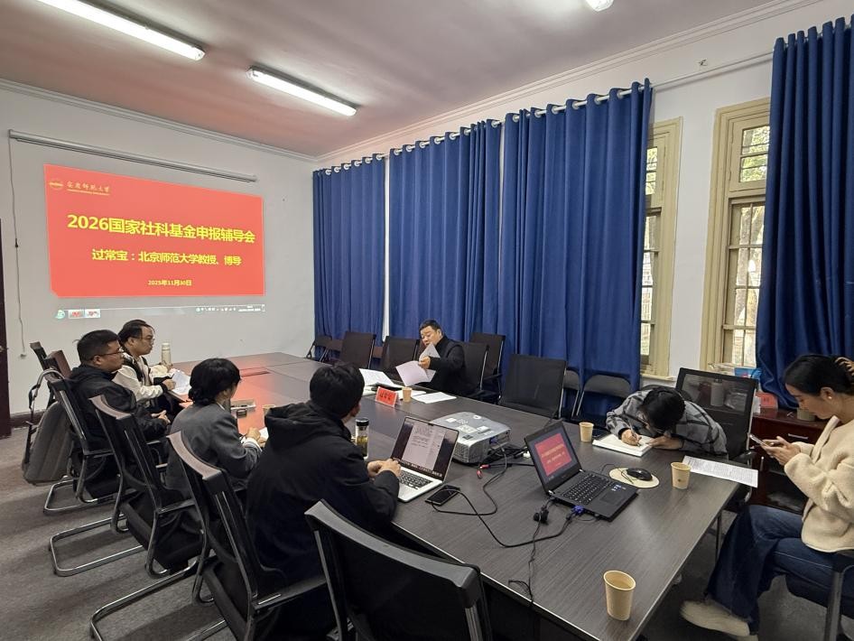 为提升教师国家社科基金项目申报质量,助力科研工作高质量发展,11月30日,英国365集团公司特邀北京师范大学文学院教授、博士生导师过常宝莅临学院,开展2026年度国家社科基金项目申报专题辅导会。英国365集团公司副院长张莹主持会议,2026年度项目申报教师、青年教师以及科研管理人员参与本次活动。