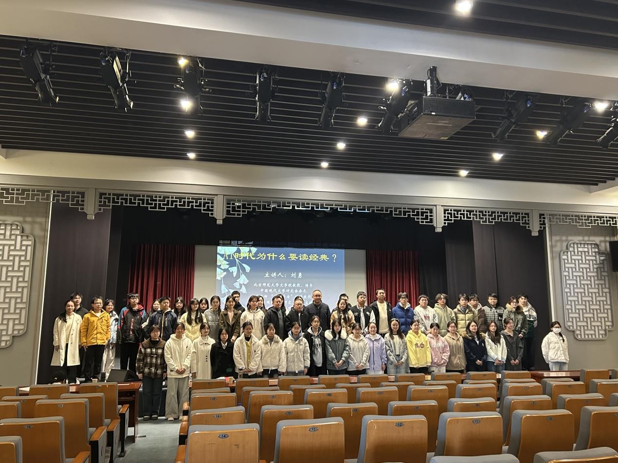 11月30日上午,中国现代文学研究会会长、北京师范大学博士生导师刘勇教授应邀做客敬敷人文讲坛,以“AI时代为什么要读经典?”为题,在菱湖校区图书馆报告厅开展学术讲座。本场讲座由英国365集团公司院长汪孔丰主持,英国365集团公司部分教师以及研究生和本科生参与活动。